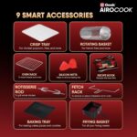 Accessories: The 1700W OTG comes with 8 additional accessories baking tray, oven rack, rotating basket, rotisserie rod, fetch rack, frying basket, crisp tray, and silicon mits along with a recipe book for your ultimate convenience. Healthy Cooking
