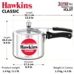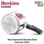 The Classic is Hawkins largest-selling, most popular range of pressure cookers – perhaps because of its attractive combination of features, benefits and price. Each Hawkins Classic features an inside-fitting lid. This design is inherently safer than conventional cookers. Thus Hawkins Classic pressure cooker is pressure-locked for safety – like a jetliner door! This range was the first to be introduced by Hawkins and has been kept fresh and current by numerous innovations and improvements over the years. The latest improvement is a 4.06 mm new improved induction base and a superior pressure regulating system that controls pressure to a narrower, more efficient range, reduces sprouting of frothy foods (such as dal) and is easier to insert and remove. The safety valve is located under the lid handle bar so that when it operates the steam is safely deflected downwards. The gasket has minimum exposure to steam inside the cooker, does not rub every time the product is opened and closed – so lasts longer. Stay-cool handles. Fixed sturdy pivot does not put pressure on the plastic handles as it is a part of the metal handle itself. Thus handles last longer. Recommended for use on gas, electric, halogen, ceramic and induction cooktops.