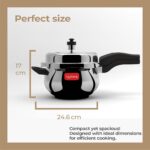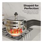 Versatile Cooking – 5L stainless steel pressure cooker designed for hassle-free cooking on gas and induction stoves, ensuring faster and even heating for all your favourite dishes.