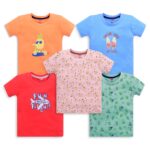 Made of 100% Cotton Knitted fabric makes it comfortable for the baby to wear. The attractive print make the baby look more cuter. One pack consists of 5 pieces of Half Sleeve T-Shirt.
