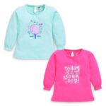 Made of 100% Cotton Knitted fabric makes it comfortable for the baby to wear. The attractive prints make the baby look more cuter. One pack consists of 2 pieces of Full Sleeve Tops with different prints.