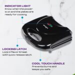 ✅SIMPLE YET POWERFUL & EFFICIENT – Made with durable die cast Aluminium grill plates with a fast-heating element that provides even toasting, this 800Watt sandwich maker comes with power indicator light that will let you know when the unit is on, while the preheat light lets you know when it’s ready to cook.