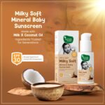Ultra-Light SPF 30 Mineral Baby Sunscreen: Made with the goodness of milk and coconut oil to protect delicate baby skin against harmful UVA and UVB rays.