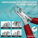 【UPGRADED QUALITY DESIGNED】We upgraded our podiatrist professional heavy duty toenail clippers from a single spring or double spring to built-in spring for extending its service life and easier to use than other toenail clippers for thick toenails without set spring manually. It made of high quality surgical grade stainless steel for sharpness and durability to trim any ingrown & tough & thick nails.