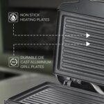 Durable Die-cast Aluminium Grill platesHeat Resistant Bakelite BodyNon-stick coating for oil free toasting700 watts power