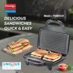 Prestige 800W Sandwich Maker (PGMFD 01)| Black | Heat Resist…